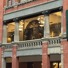 また、建物が歴史的に価値のある建物だそうで外観は重厚なイメージでした。中に入ると二階から上に席が多くてソファ席もあって落ち着けます。
