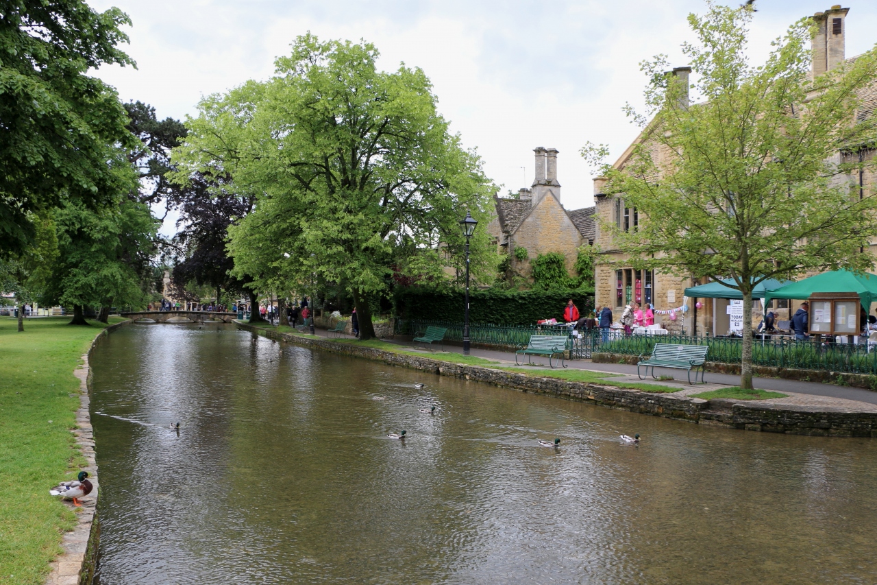 街の中心を流れるウィンドラッシュ川には5か所の石橋が架かり、カモたちが泳ぎ回る光景はとても長閑で美しいです。