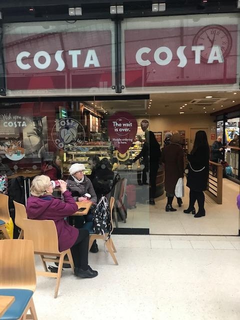 リヴァプールのライムストリート駅からロンドンのユートン駅まで電車で移動しました。列車に乗る前にコーヒーをテイクアウトできるお店をライムストリート駅で探してこのコスタコーヒーを見つけました。コスタコーヒーはイギリスのあちこちで見かけるお店で、安心して中に入れました。