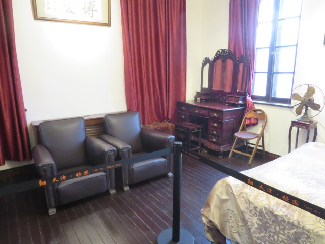 南京路から入る鞍山道沿いにあります、静園からすぐの場所にある旧日本租界に残る洋館です、実業家の張彪の邸宅で清の最後の皇帝である傅儀が北京を追われて天津に移って最初に住んだ建物です、2017年より公開されました、展示室には当時利用していた用具や寝室・風呂が保存されていて見ることができます、外にもバイクなど展示されていました。