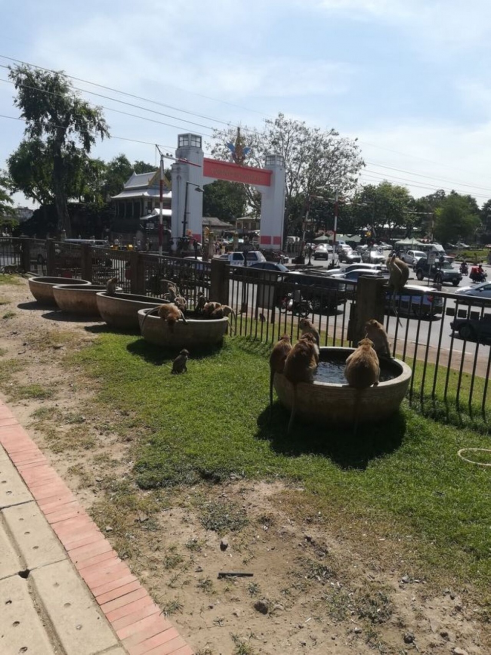 プラプラーンサムヨートは13世紀にクメール人によって造られ三基のクメール式仏搭が特徴。建立当初はヒンドゥー神の三位一体を表していたがのちに仏教寺院に改められたとのことです。この寺院はとにかく猿だらけです。まさに猿の寺院。食べ物等彼らが興味を持つとひったくられるのでご注意を。