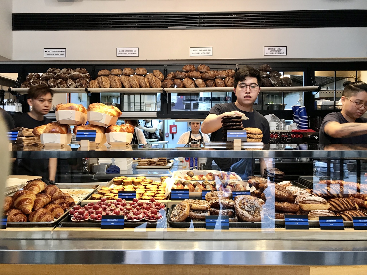 F.S.香港のシェフだったフランス人がオープンさせたベーカリーカフェです。地元の方にとにかく大人気で、平日はオープン直後の8時から9時前は大混雑だと聞きます。訪れたのは土曜日でしたので、9時からオープンの日でしたが、オープン前から数組並んでいました。店内で、食べる方とテイクアウェイ方の入り口が違うので目的によって並ぶ入り口が異なります。