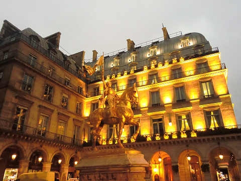 夜に訪れると周りの窓からの光が黄金のように光っており、ジャンヌダルク像が際立ちます。