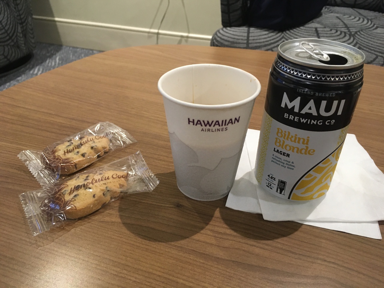 こちらはハワイアン航空のラウンジになるようです。Wi-Fi使えたし受付でホノルルクッキーが貰えたり、トイレもあってゆっくり休む事ができました。