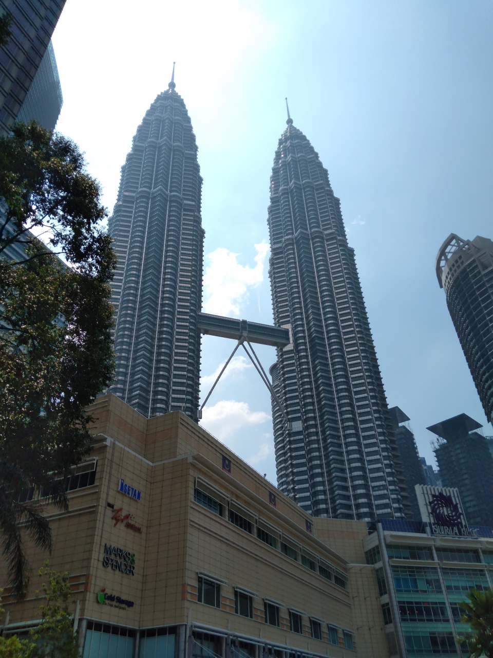 KLCC公園に立つクアラルンプールで最も有名なツインタワーです。ブギッビンタンからタクシーやバスだと渋滞に巻き込まれてしまうと思い、パビリオンから徒歩で20分ほどかけて行きました。流石に近辺には公園やショッピングモールもあって、非常に多くの人で賑わっていました。昼間より夜の方がライトアップされており綺麗です。