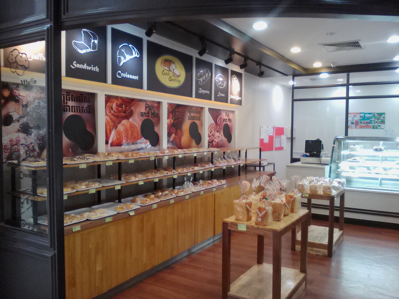 ラッキーモール1階、スーパー手前の左手にあるベーカリー。食パンからクロワッサン、コルネ、デニッシュ、ケーキなど一通り揃っています。その中でコーヒー味の食パンを買いました。お値段1ドル。精算はスーパーのレジで行ってほしいと。てっきり4000リエルかと思ったら4100リエルでした。だったら損をするので1ドル札で払いました(両替所では1ドル→4080リエルくらい)。