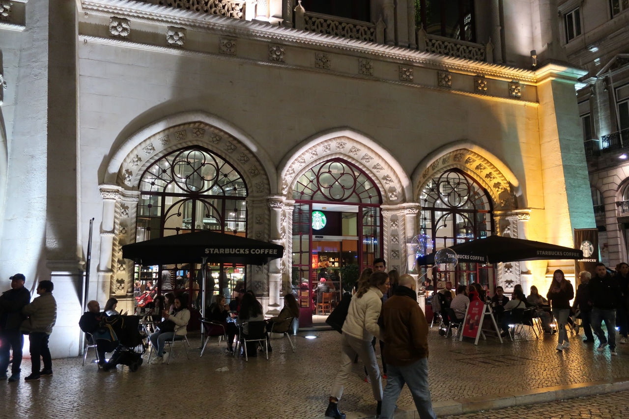 ロシオ駅内のグラウンドフロアに入っていました。ロシオ駅入り口の右側です。外観が素晴らしいロシオ駅なので、スターバックスもとても重厚感があってお洒落に見えました。店内の雰囲気は日本のスタバと変わらないなぁ~っと感じました。レジカウンターには長蛇の列、席はほぼ満席ととても混雑していました。ポルトガルらしく、エッグタルトが売られていたので、購入!。普通のエッグタルトでした(笑)。夜のロシオ駅は素敵なので、ぜひ訪れるときは夜を!。