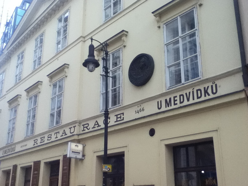 壁の中の聖マルティン教会西側の路地沿いにあるレストラン。ガイドブックに載っていたので行ってみた。5、6人が待っていた。席が空いていても、受付スタッフはなかなか案内せずかなり待たされた。ビールを飲みながら、スヴィチュコヴァーを食べたが、肉は柔らかめで、ゆでパンととともにまぁまぁ旨い。スヴィチュコヴァーは他のお店でも食べられるが、ここで食べるには早めに行った方がいいかもしれない。