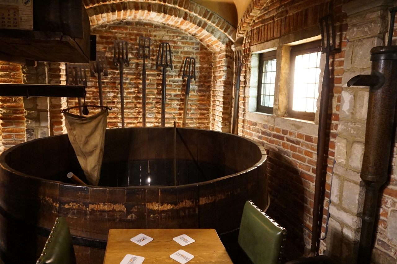 パブのような部屋には、かつてのビール製造で使われたと思われる大きな樽などが置かれていましたが、博物館のスペースはその奥の1室のみ。ビールの製造をビデオで鑑賞するようになっていました。