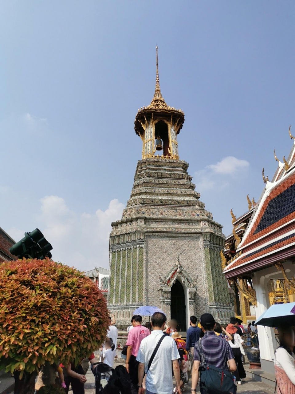 ワットプラケオの本堂の横にそびえる鐘楼は綺麗に装飾された美しい建物です。
