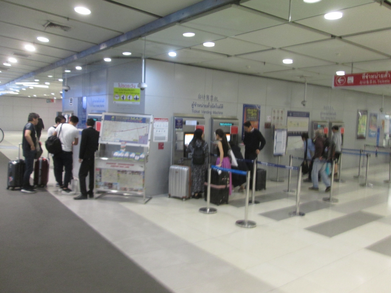 エアポート レール リンクのスワンナプーム空港駅やマッカサン駅に有人窓口がありましたがなくなっていく傾向です。利用者は自動券売機を使いセルフでトークンを購入する必要がありました。発券機はタイ語、英語のみ対応ですが、操作しやすかったです。