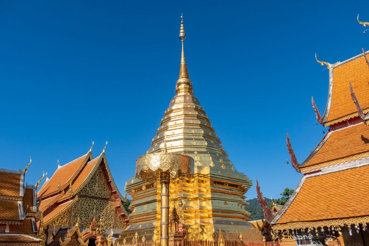 1383年にクーナ王によって建立されたタイ仏教の聖地で、黄金に輝く仏塔(チェディー)で有名。この黄金の仏塔を献花と線香を捧げながら時計回りに周りを3周すると願いが叶うという伝説があります。ちょっと訪れるのが面倒な立地ではあるけど、タイ仏教の「聖地」を感じられる貴重な場所です。