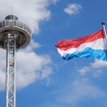 アドルフ橋から入ってくるとすぐにこの広場になります。ノートルダム大聖堂のすぐ手前です。国旗やEU旗がはためいています。てっぺんに黄金の天使がいる「第一次世界大戦戦没者慰霊碑」が鋭く高く立っています。この時は「タワー」が来ていました。