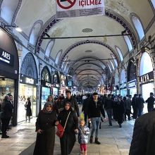 何度かイスタンブールに来たことありましたが、グランド バザールは今回が初めての訪問です。入口は何箇所かある様ですが、ヌールオスマニィエ・ジャーミーがある門から入りました。アーケード式になっていて、たくさんのお店が詰まっていました。品物自体は特に珍しいものはありませんでした。