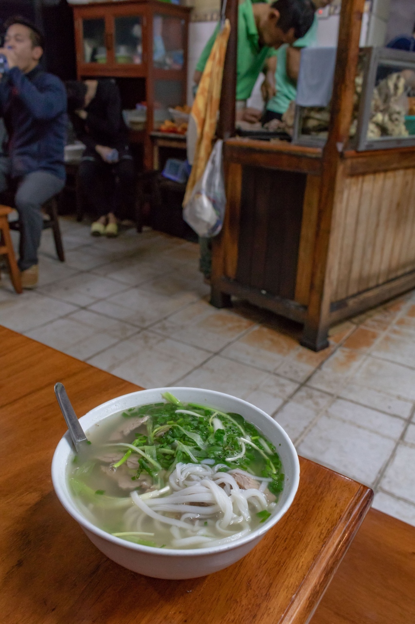 Pho Chinを食べました。値段は50,000D。朝から閉店まで常に行列ができる名店も早朝なら行列知らずでした。フォーにしては麺がモチっとしてて、肉の量も多め。パクチーが気持ち少な目なのも嬉しいポイントです。