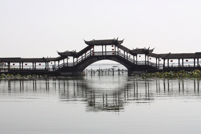 運河遊覧コースは、錦渓の運河にかかる古蓮橋や、五保湖の陳妃水塚などを一周しました。