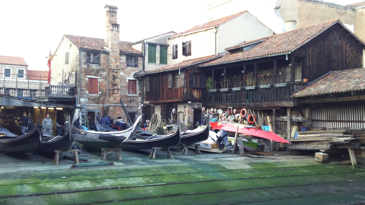ベネチアではたくさんのゴンドラをみることができますが、ここでつくられているのです。