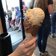 アイスクリームは、拳の大きさほどもあろうかというビッグサイズでした。味も濃厚で美味しかったです。人気店で混雑していますが、二階にも席があって、店内は広かったです。