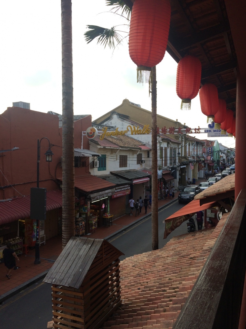 マラッカのオランダ広場からマラッカ川にかかる橋をこえて、ジョンカーストリートにつきます。中華街のメインストリートで、漢字が書かれた古い町並みや中華っぽい建物やお店が増えます。オランダ広場と雰囲気が違って楽しかったです。