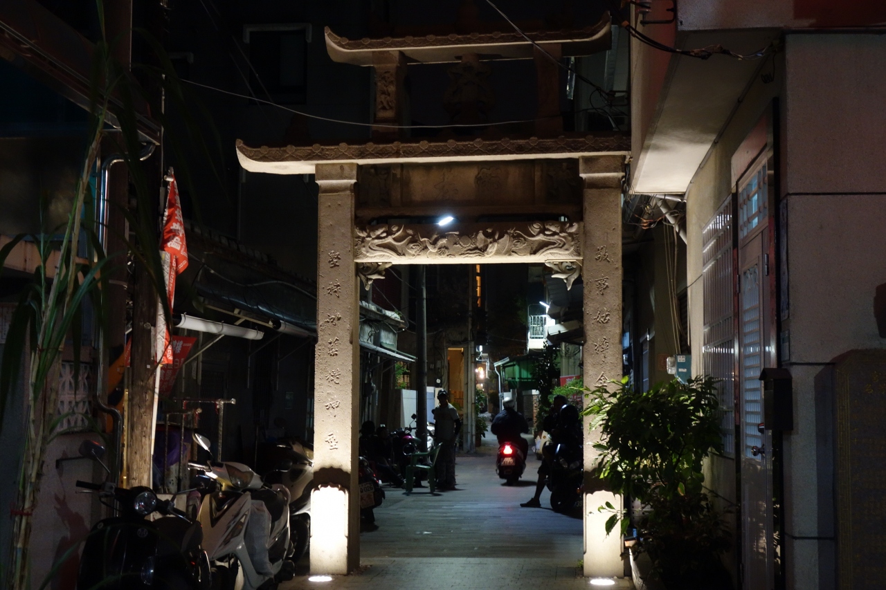 台南に滞在中こちらの場所を訪れました。府前路から小路を入った住宅街で、道に置かれた門のようになった節孝坊です。日本人としては鳥居のような印象も持ちました。奥まったところに有りながらライトアップされていて観光スポットであることを感じました。