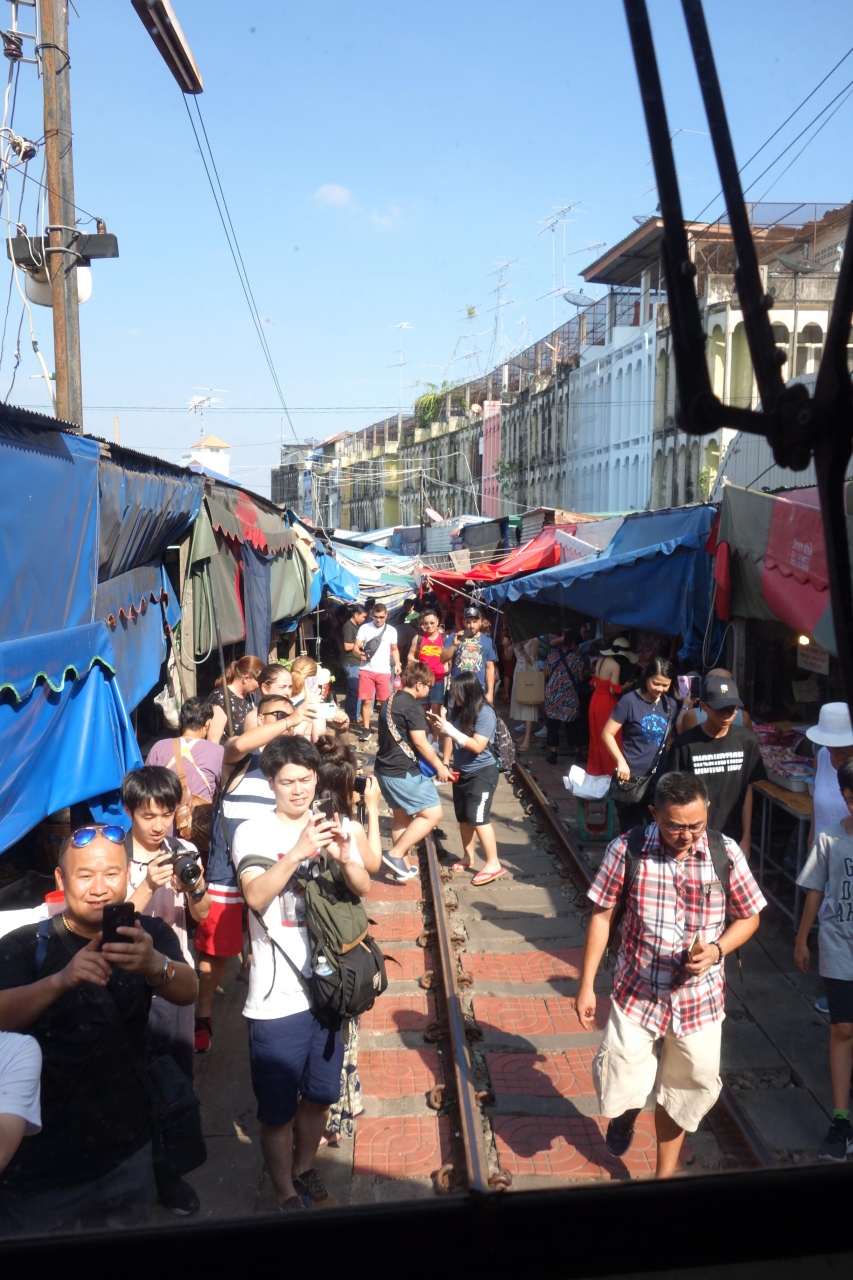 マーケットを通るときは電車も非常にゆっくり動きます。