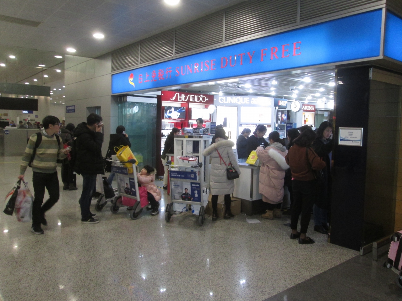 通常、免税店は出国審査が終了したエリアにあるものですが、上海浦東国際空港は到着階にもありました。コンパクトな空港でしたがの入国審査前の制限区域内にお店がありました。定番のコスメ、タバコ、アルコールがこちらで購入できます。