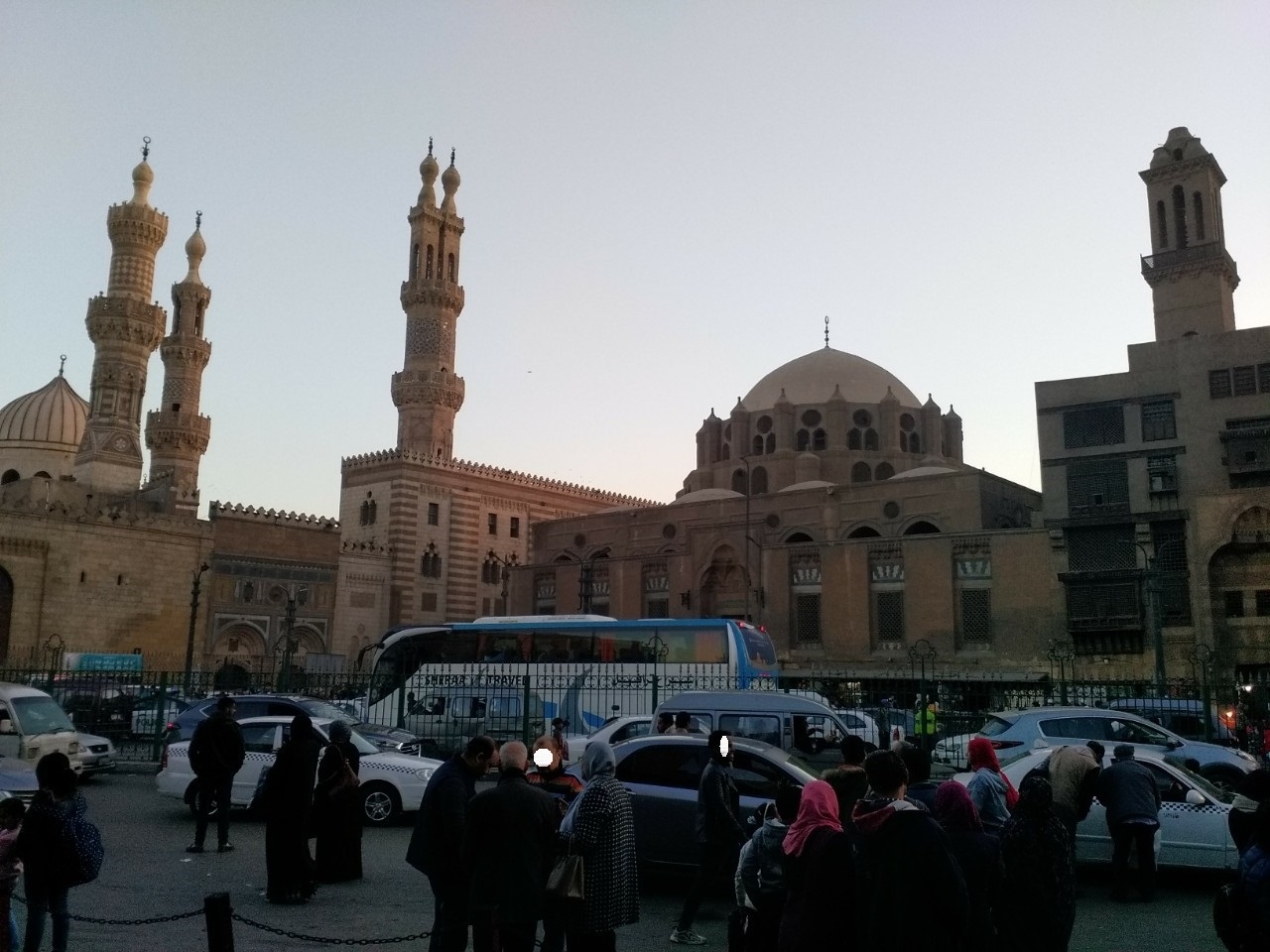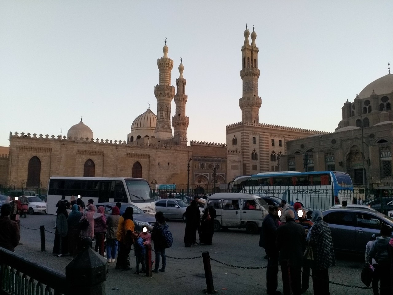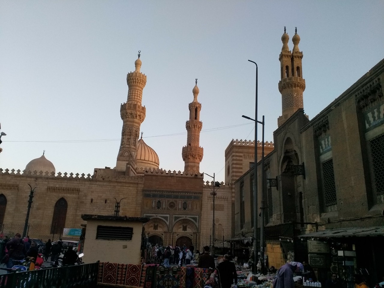 カイロ一番の繁華街、ハンハリーリ・バザールを訪れた時に最初に目に飛び込んでくるのがアル・アズハル・モスクの大きな建物です。特に五本のミナレット、中でも双頭のミナレットは中々見れない風景です。