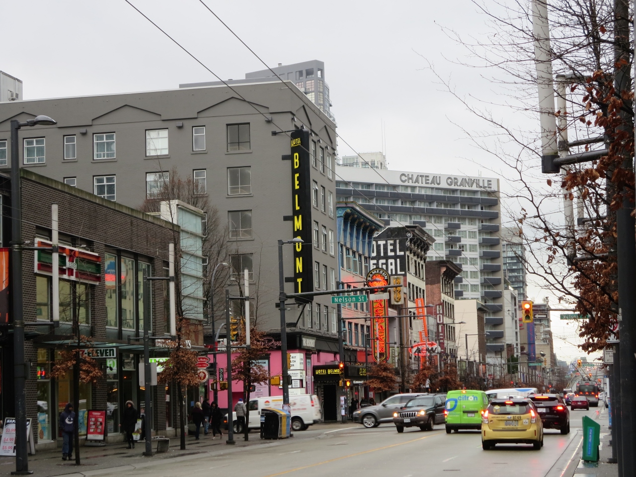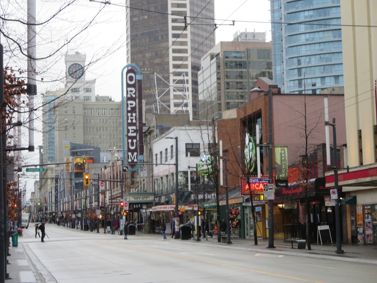 バンクーバーのダウンタウンの大通りでカナダプレイスとグランビルアイランドを繋ぐ通りです。シティセンター駅やグランビル駅が途中にあり、ショッピングモールがあって、一見賑やかそうな通りですが交差するロブソン通りと比べると人通りは少なかったです。