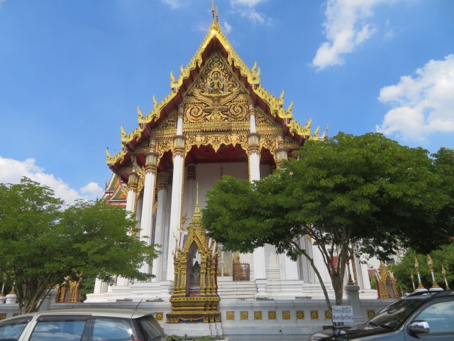 チャオプラヤ川に近い場所にあります、市場を見た後寄りました、1424年8代目の王が継承争いで死んだ二人の兄たちの為に建立した寺院です、境内に1933年に建てられた金閣寺を模した日本人物故者納骨堂があります、1895年以来タイでなくなった日本人が祀られています、堂内には入れなかったの外で手を合わせて帰りました。
