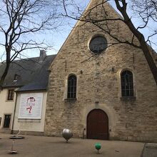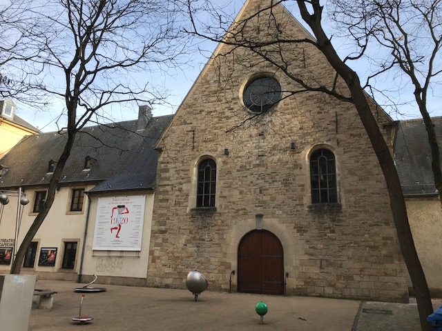 ルクセンブルクの旧市街を散策しているときに見つけました。商業の中心地アルム広場から北へ歩いて行くと右側にありました。シックな感じの建物です。地元では有名なんでしょう。建物の前の広場には、ちょっと変わったオブジェがありました。