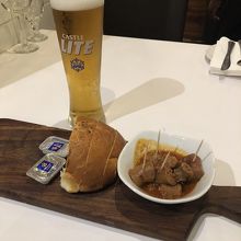 今回はビールに2杯をオーダー。約10%チップ込みで400ZAR(3,000JPY)。今回はチーズソースを頼んでみましたが、かなり美味しかったです。