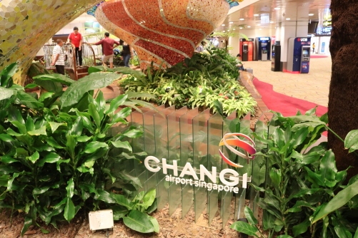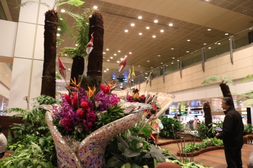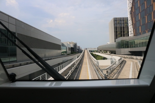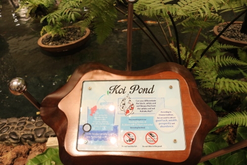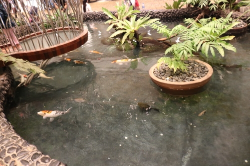 今回、バリへの乗り継ぎでターミナル3からターミナル2へスカイトレインで移動しましたが、途中で大きな滝を見られました。鯉の池があります。