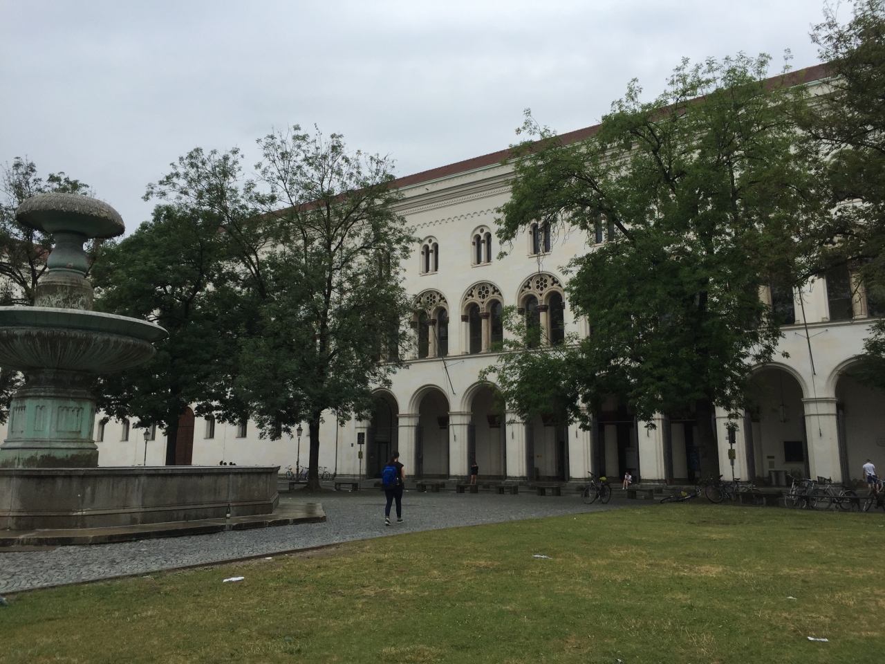 旧市街の北側にあるキャンパスに行ってみました。ルートヴィヒ通りという大きな通りに面していて、校舎の前に大きな噴水がありました。夏休み中ということで、キャンパス内には学生はさほど多くありませんでした。静かで落ち着いた雰囲気でした。