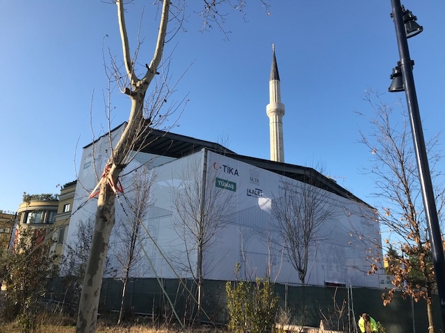 スカンデベルグ広場に建っているモスクです。とても有名なモスクの様で行くのを楽しみにしていたのですが、修復作業中で幕で覆われていて、屋根の部分しか見ることができませんでした。モスクないのフラスコ画がとても美しいと聞いていたので、中に入れずにとても残念です。