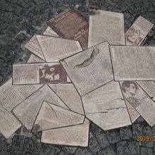 セラミックのタイルで当時のビラが作られ道路に埋め込まれています。