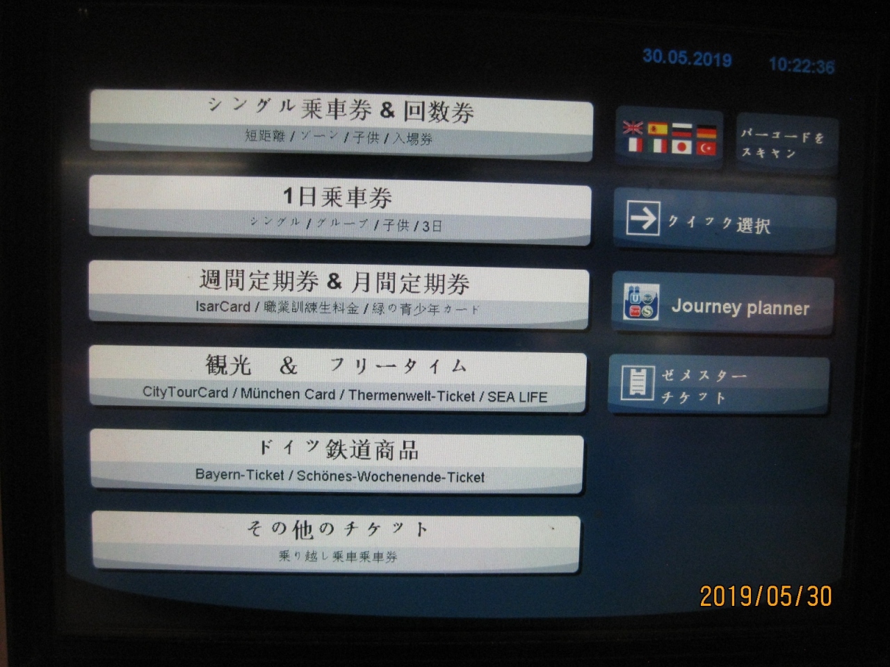 券売機で切符を買いますが、驚いた事に日本語の案内がありました(最近は中国語はあるが、日本語は無いのが多い)ので指示に従って楽に購入する事が出来ました。