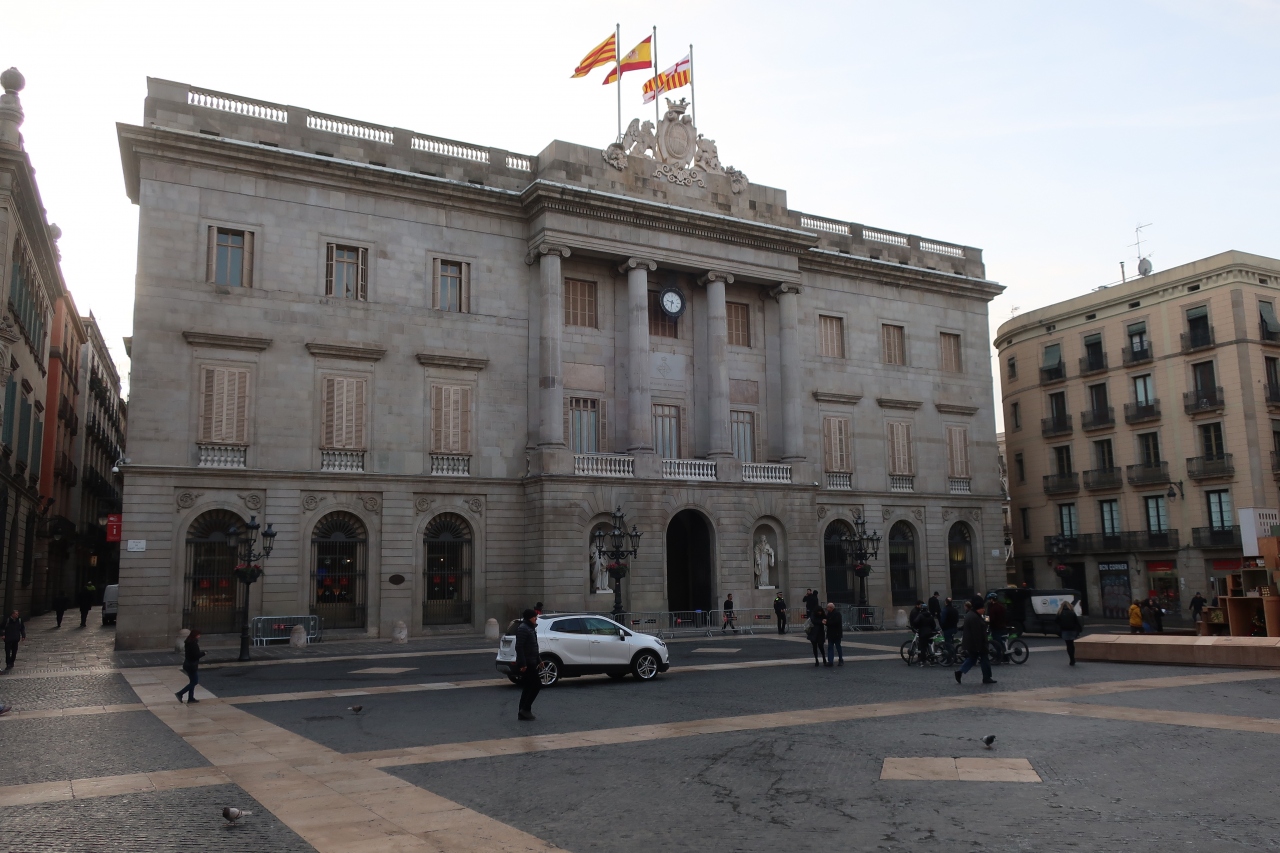 サン・ジャウマ広場にあります。自治政府庁と向かい合うように建っています。自治政府庁との違いは建物の上に掲げられた旗の数です。バルセロナ市庁舎は3本の旗が掲げられています。カタルーニャ州旗、スペイン国旗、バルセロナ市旗です。こちらの建物は14世紀のものですが、ファサードだけは19世紀に完成したようです。堂々とした建物で見ごたえがありますよ。