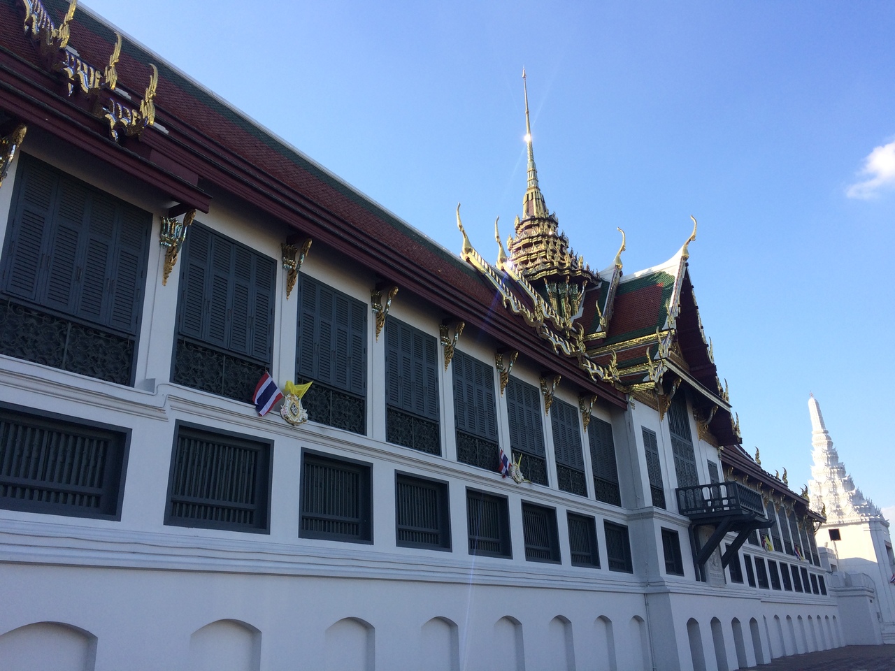 王宮付近にくると、国王や皇太子、王妃の大きなポートレートが増えてきます。入場料はタイの物価の中では高いほうなのは、仕方ないとして閉まるのが早い気がしました。建物の内部は、見えないので、外の飾りを見ました。暑かったです。