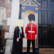 以前は、故ダイアナ妃が住んでいましたが、今はウイリアム王子、キャサリン妃、3人のお子さんが住んでいます。この日は、ケンジントン宮殿の前庭の散策もできずに、門が閉まっていたので、警備の兵隊さんとツーショツとしました。