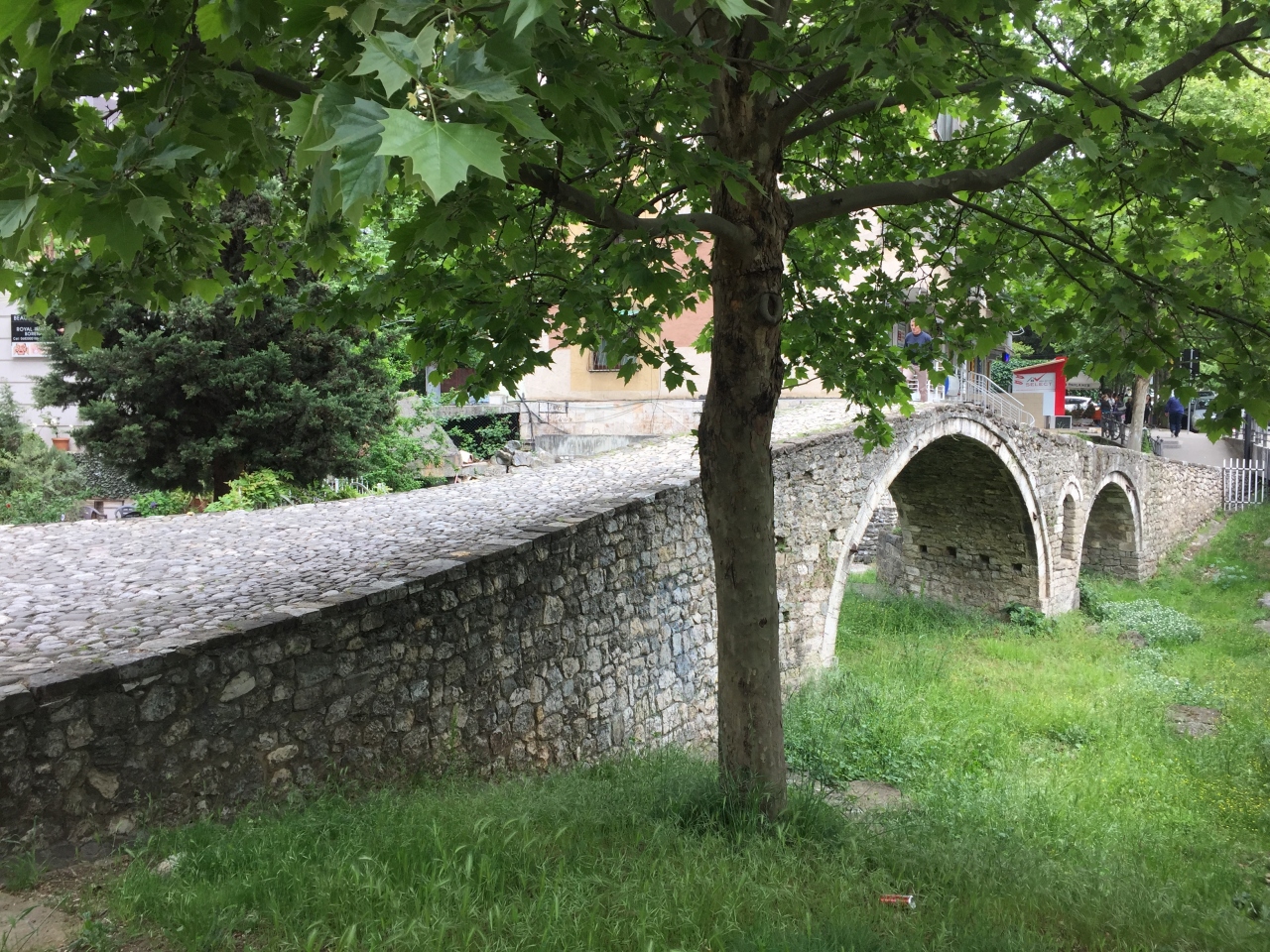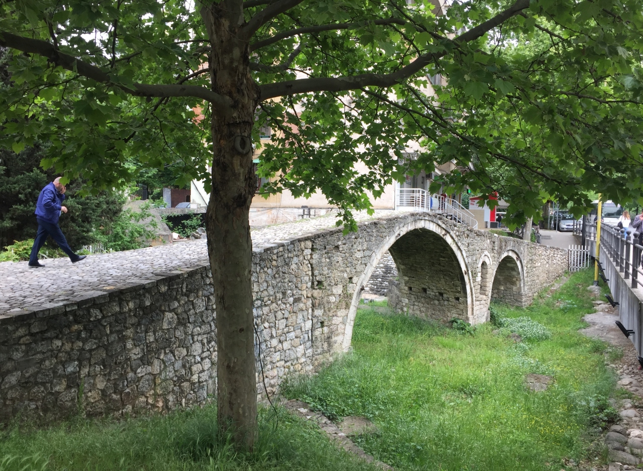 18世紀オスマン帝国時代の、長さ8mの石橋。英語名はTanners' Bridge。スカンデルベグ広場から南東へ10分歩くと、道路と並ぶように草地に建っています。