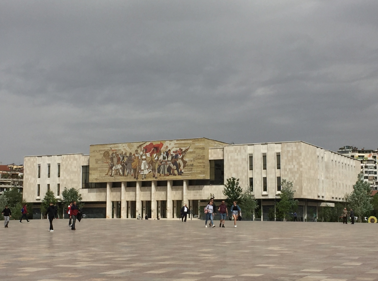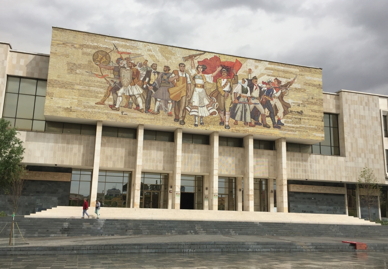 それでも、バルカン最大と言われる10mx40mの、建物正面のモザイク画がすごく印象的でした。「アルバニア人」というテーマで、古代イリュリアの時代から第二次世界大戦までの、アルバニア人の勝利と誇りを表しているのだそうです。これぞ『社会主義リアリズム(社会主義を称賛し、国が勝利に向かって進んでいる姿を描いて国民の思想を革命的、社会主義的に改造するための芸術)』という感じで、圧倒されました。