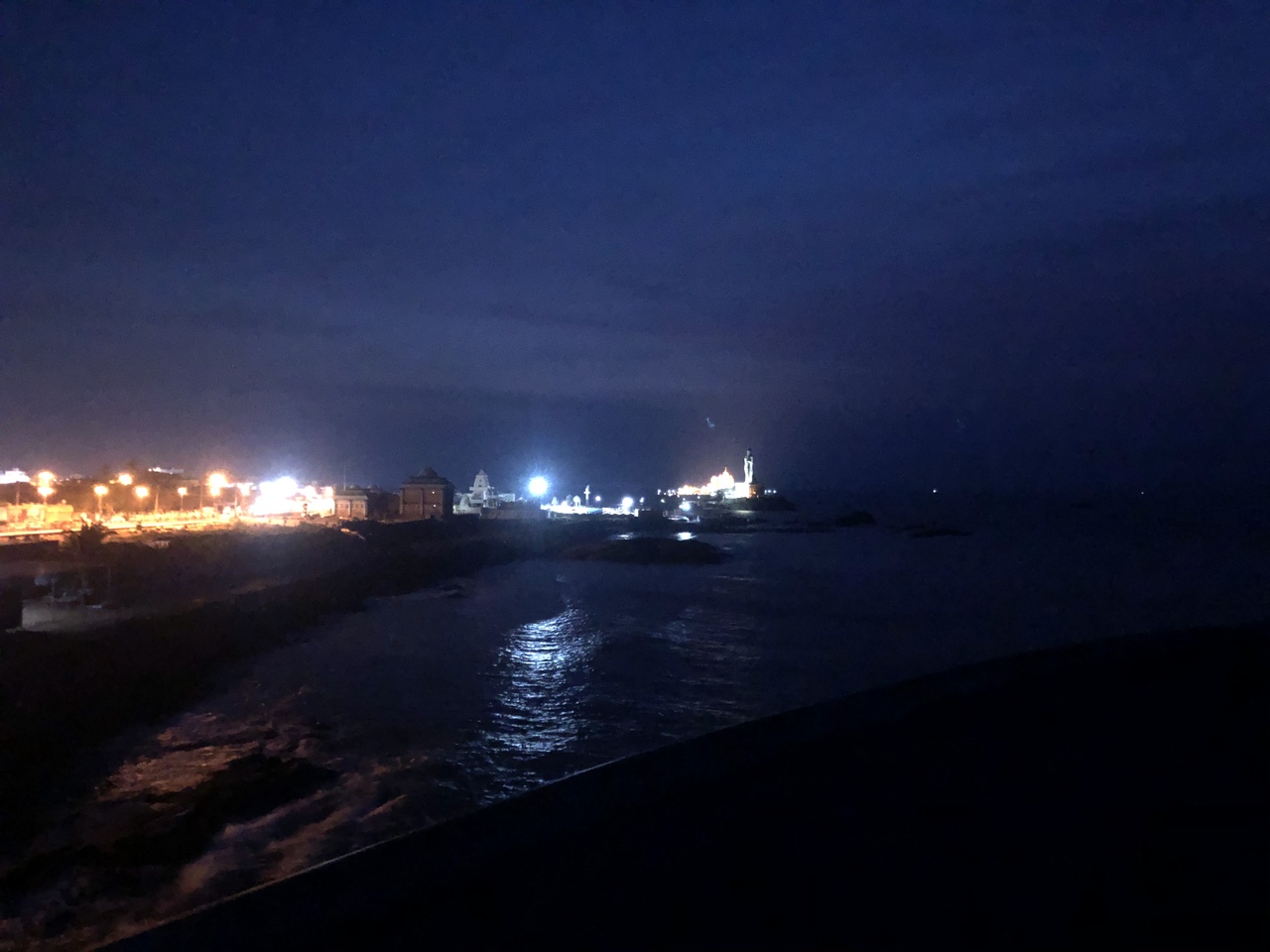 周囲は真っ暗だったので、ライトアップされたヴィヴェーカナンダ岩記念堂