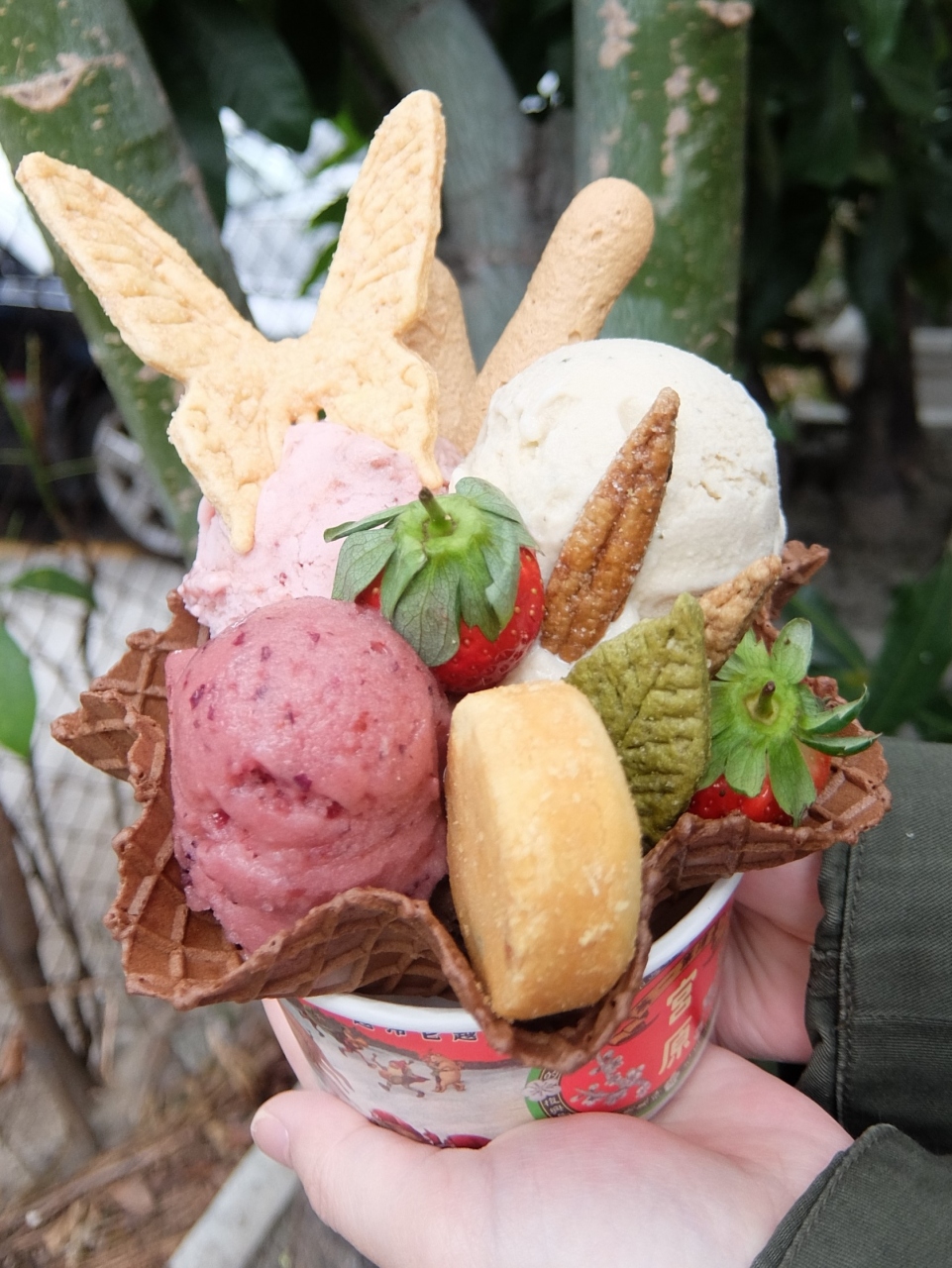 一階で売られているアイスクリームが大人気で、我々もここのアイスクリームを購入して、食べました。トッピングがこれでもかというぐらい盛られているので、凄いボリュームです。