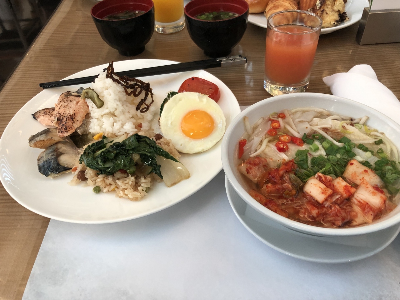 モーニングビュッフェは一人45シンガポールドルですが、サービスチャージやTAXを含めると日本円で一人約4,000円の朝食です。
