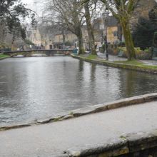 コッツウォルズのはちみつ色の家々が並ぶ通りに行くのに、この付近を散策しました。車道から中に入りますが、狭い橋で行き来が大変でした。川沿いを一回りすると、鮭の養殖所やお土産ショツプに行きます。東南アジアの観光客が多かったです。