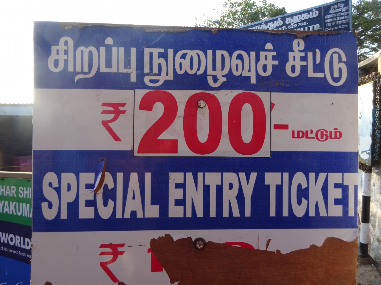 一般チケットの大行列を見て、迷わずスペシャルエントリーチケットを選択しました。前の日は強風で運航停止していたので、乗客が特に多かったのかと思います。値上がりして200ルピーになっています。スペシャルエントリーのおかげで始発のボートに乗れて朝一番に島に上陸しました。