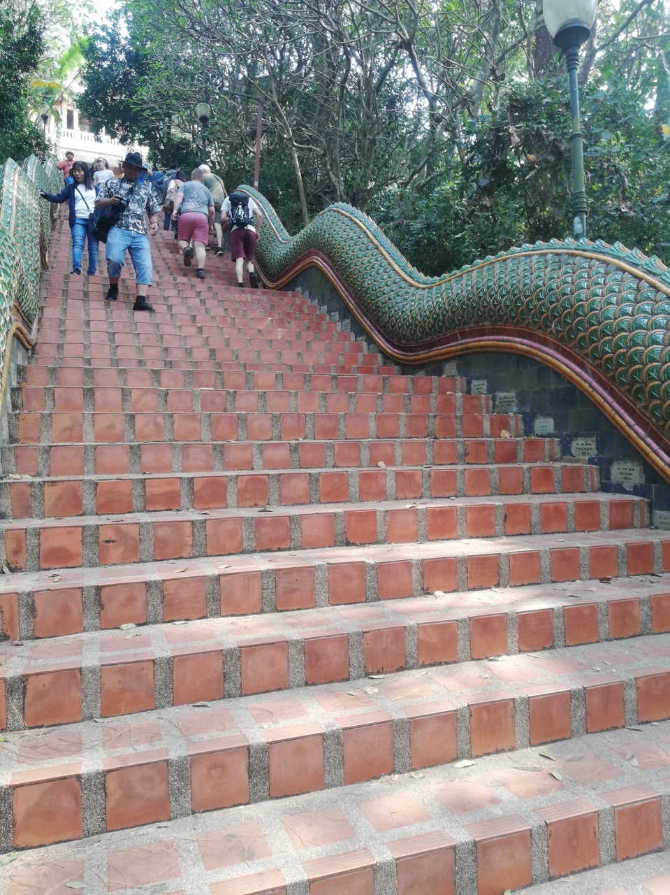 チェンマイに来たらドイステープへ、というくらい有名な寺院。街からタクシーで30分ほどの高台にあります。タクシー半日チャーターして訪れました。タクシーを降り、急な階段を昇ると金色に輝く仏塔、仏塔の周りを回る人々。高台にあるので眺めもよいです。階段にはモン族の子供が鮮やかな衣装をまとってたっていました。