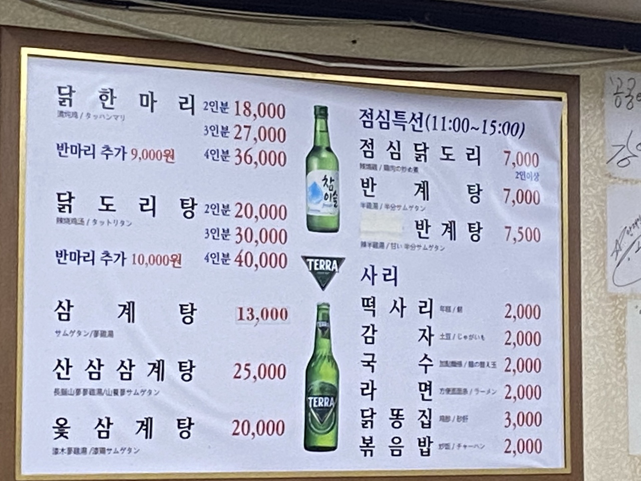タッハンマリは2人分~で18000ウォンとリーズナブル。