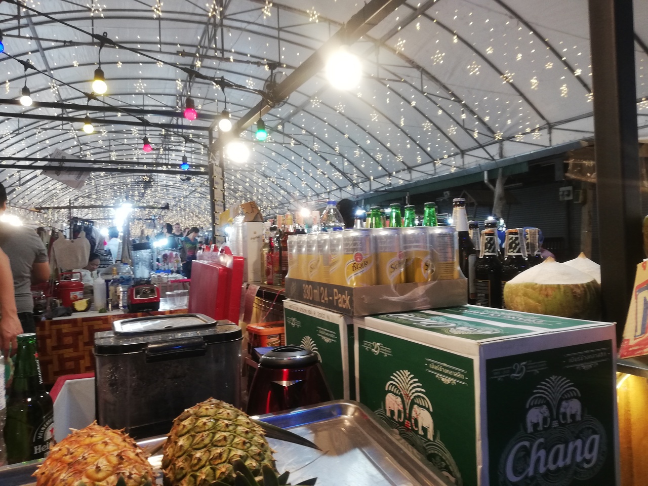 ナイトマーケットの通りに隣接した屋根付の市場。掘り出し物が見つかる土産物やさんがたくさん並びます。フードコートも充実。突き当たりには簡単なステージがセットされていて躍りを見ることができました。周りにはビール、カクテルが飲めるお店もあり歩き疲れた休憩にぴったりでした