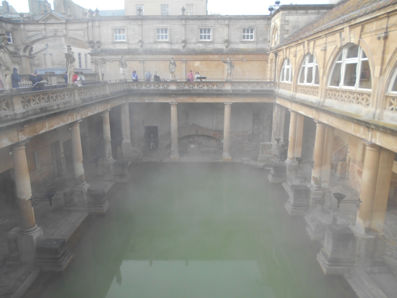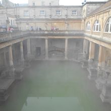 紀元75年にローマ人が築いた温泉地が始まりで、その後長い間埋もれていましたが18世紀に貴族の保養地として復活した、とても有名な場所です。現在バスには入れませんが、お湯は湧き出ています。緑色のお湯が印象的でした。日本語の音声ガイドがあります。また施設内は整っていてとてもきれいでした。